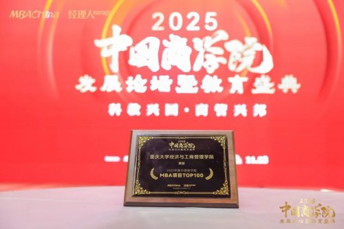 喜报!重庆大学经济与工商管理学院荣获“中国商学院MBA项目TOP100”第十名、“MBA联合会金徽领航奖”奖项