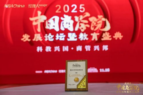 重庆大学MBA联合会成立于2001年,是重庆大学MBA唯一官方学生组织。作为学生群众性组织与学院沟通的桥梁纽带,联合会在学院及MBA中心指导下,秉持“自我服务、自我管理、自我教育”宗旨,深耕团队建设、校友资源拓展与同学服务,致力于打造立足西南、辐射全国的一流MBA组织。此次盛典中,联合会凭借校院、学员与社会各界的联结赋能作用,成功斩获2025年度中国商学院“MBA联合会金徽领航奖”